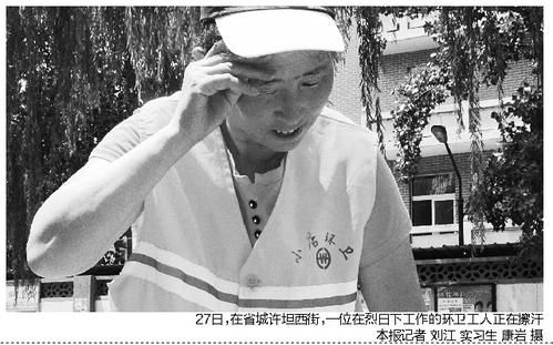 今日下午3时,记者在运城市区人民北路某工地看到,建筑工地虽然没有停工,但是大多数工人隐蔽在阴凉处工作,少数几人赤膊着上身工作者正在施工的建筑物顶端。“工期紧,而且也习惯了。一到这时候,大家就轮班作业,隔一会儿互相替换一下。”一名施工工人讲。