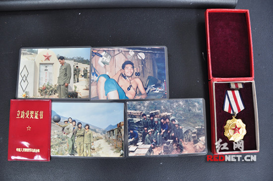 (韩德民在对越反击战战场上的照片和所获勋章、立功受奖证书)