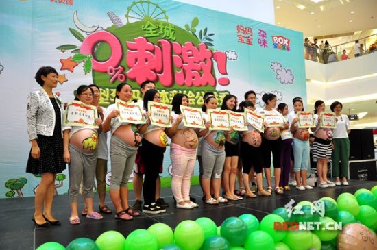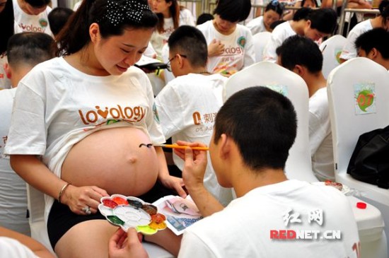 长沙上演孕妇肚皮彩绘秀 50位孕妈大肚变“画板”