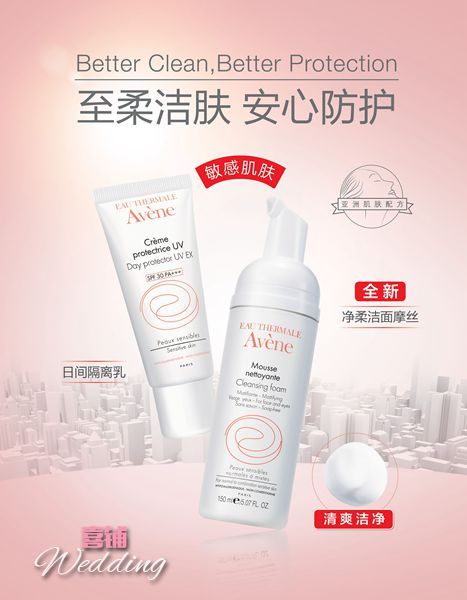(使用雅漾净柔洁面摩丝,再搭配可有效抗污染、抗UV、强化增强皮肤屏障的雅漾日间隔离乳,改善并增强皮肤屏障。)