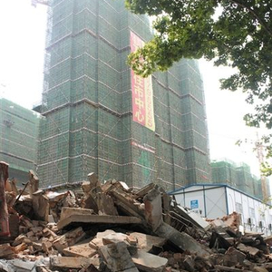 7月21日,麻伟玲、胡凯母子居住的6号楼现已被全部拆除。废墟后为名门地产公司建设中的回迁新房。