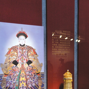 展览中,一尊金嵌珠石覆钵式塔颇为引人注目。据了解,这尊金嵌珠石宝塔为九五成色金,为收贮慈禧的头发所用,塔上有“孝钦太皇太后发塔”字样,于宣统元年制作。孝钦太皇太后即为慈禧,如今塔内还收藏着“老佛爷”的青丝。