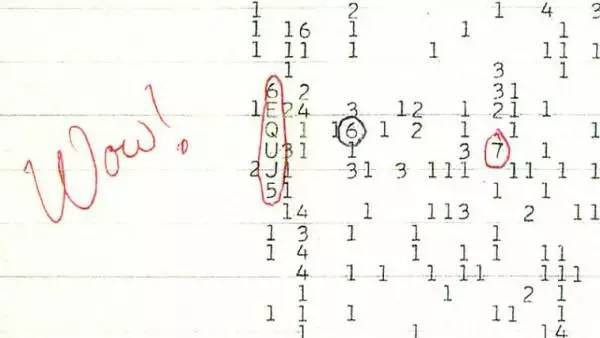 无独有偶,还是射电望远镜,又接收到了“外星人”的信号。1977年8月15日,在美国俄亥俄州,一部名为“大眼睛”的射电望远镜在对人马座进行观测时发现了一个有规律的信号。当时,这个信号持续了72秒,这让研究人员杰里·伊赫曼兴奋不已,随手在打印信号的记录上写下了一个大大的“Wow!”,这个信号也因此得名。