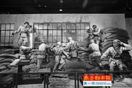 上海四行仓库纪念馆内展出淞沪会战期间的四行仓库老照片。