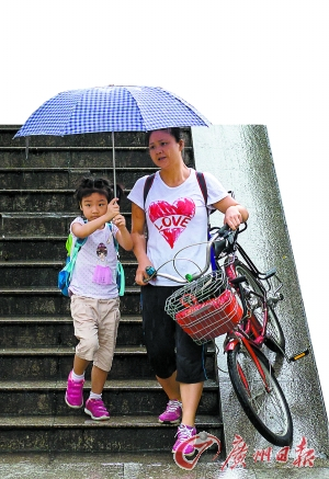 雨天,接送孩子的家长。广州日报记者苏俊杰 摄