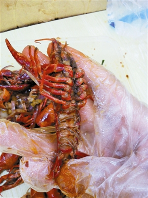 记者买到的一小吃档口的小龙虾。