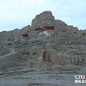 古格王朝遗址矗立在一座土山上。国际在线消息(记者 李瑛):在西藏阿里地区札达县托林镇不让村两公里外的一座土山上,矗立着一座让人震撼的古城堡,它就是举世闻名的古格王朝遗址。8月8日,记者登上了这座300年前神秘消失的古格王朝所在地。