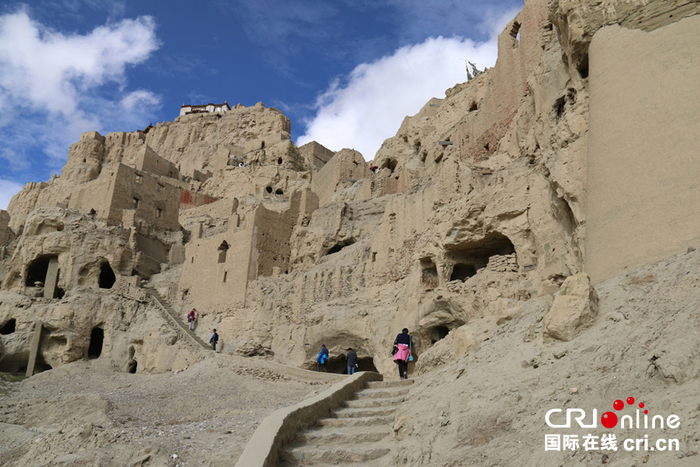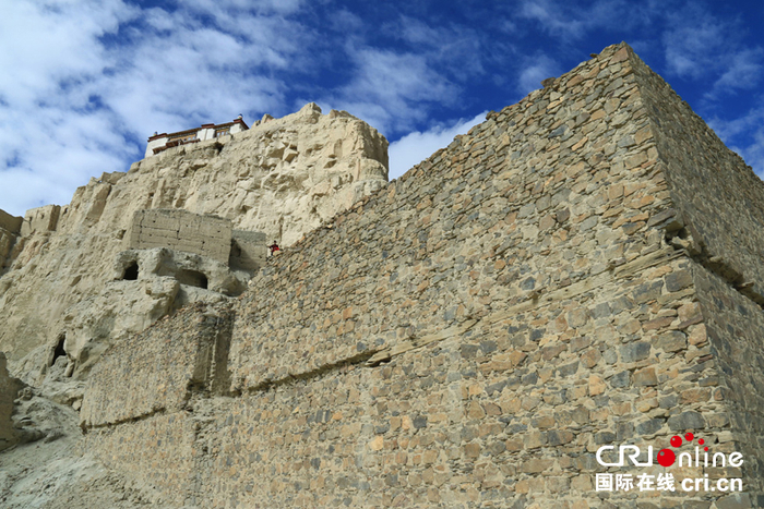 行至半山腰,眼前出现一座风格跟古格城堡风格不同的由石块砌成的方形城堡,据札达县委宣传部长周增亮介绍,这座方形城堡跟古格王朝的灭亡有着直接关系。