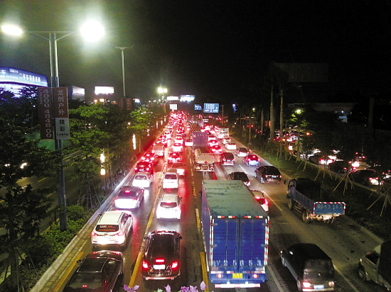 该事故造成谢叠大桥东侧大塞车,记者赶到时,车龙已大约有1公里长。桂澜路往罗村方向辅道被封闭。