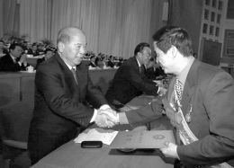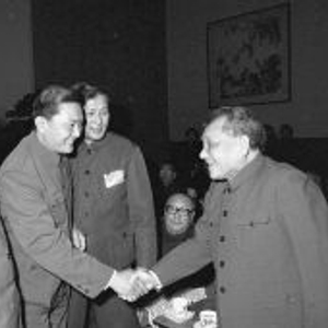 1983年10月29日,邓小平同志和新当选的全国总工会领导人见面。左一为尉健行同志。