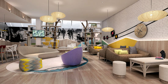 首先,在整个大堂的设计上,设置有影吧、书吧、餐吧、咖啡吧、桌球游戏区以及健身室等,让它彻底成为一个趣味公共空间的平台,成为“窝友”们趣味生活不可或缺的一部分。