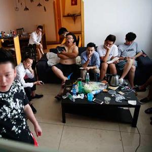 130平方米的房子里挤着十几个人,团队里有3名导师,1名助教,1名后期,剩下为学员。