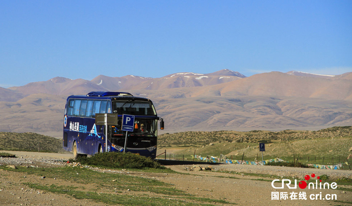 神山脚下的色雄,是转山之旅的第一站,图为2015年印度第9批香客团的大巴车抵达色雄。(摄影 廖继勇)