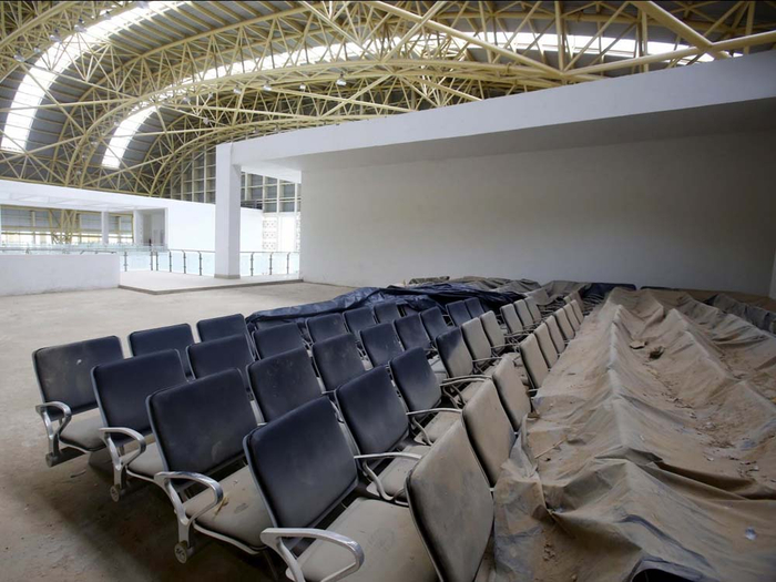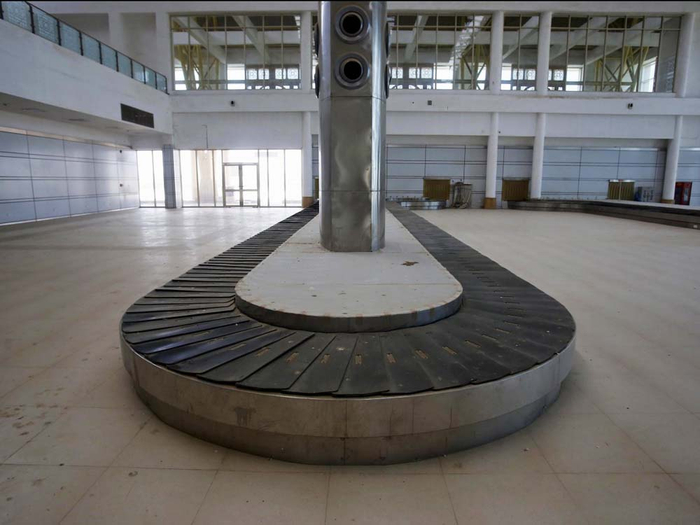 该机场每年本可承载30万的客流量,并可停放3架180座的窄体客机,但现在机场却被灰尘覆盖,空无一人。