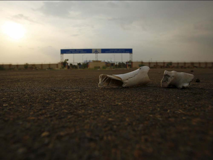 通往机场的路上散落着动物的骨架(网页截图)
