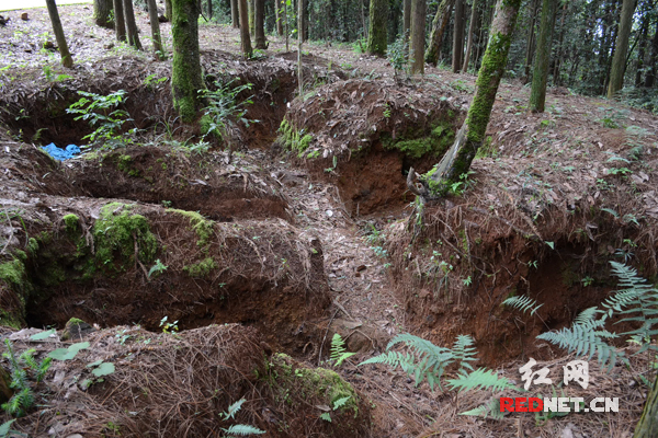 经过清理,在葱绿的丛林中,如今来凤山上随处可见日军当时修建的战壕,作战休息室以及炸弹爆炸时产生的巨大弹坑。