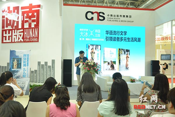 (8月26日下午,现象级热门作家大冰对话韩国出版活动在北京图博会湖南展馆举行。)