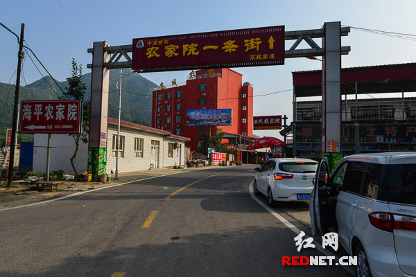 汽车不知转过了多少道弯,前方道路逐渐变得宽阔起来,两旁鳞次栉比的店铺、招牌高挂的农家旅馆、各式各样的外地汽车和熙熙攘攘的游人,一个热闹的小村映入眼帘。