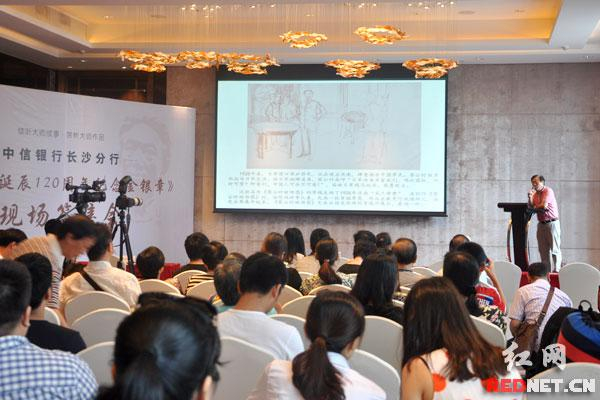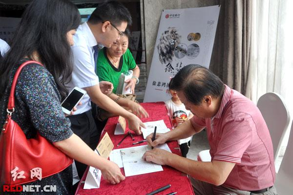 (8月27日,中信银行长沙分行举办“徐悲鸿爱国画展红色万里行长沙站暨徐悲鸿诞辰120周年纪念金银章签售会”。)