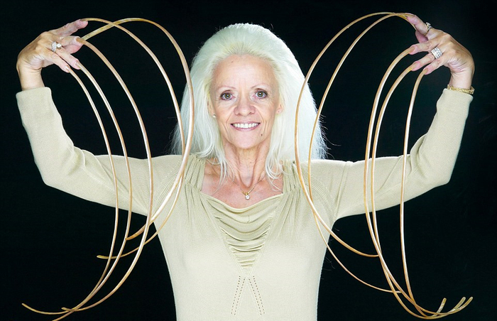 美国的李·莱蒙(Lee Redmond)拥有世界上最长的指甲,每个长约1米。(网页截图)