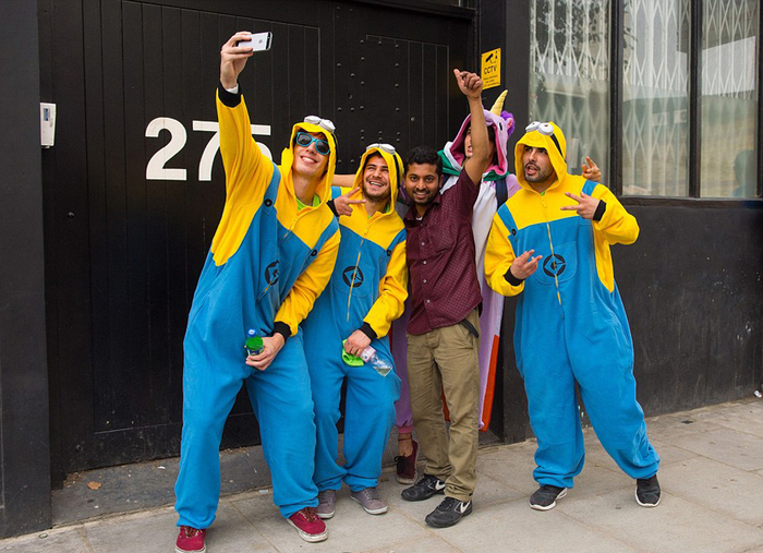 民众闪亮的装扮将伦敦街头点亮。(网页截图)