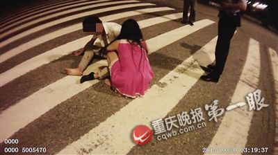 很快,渝北区公安分局回兴派出所民警何茂成赶到现场。何警官告诉重庆晚报记者,当时这对男女依然坐在公路中间的斑马线上,一身酒气。见两人并无大碍,何警官将两人扶到路边。