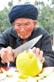 付素清老人耳聪目明,还能削柚子。