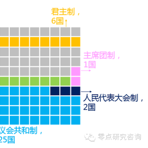“一带一路”沿线国家政体复杂多样,共有“总统制”、“议会共和制”、 “君主制”、“君主立宪制”、“人民代表大会制”和“主席团制”六种政体。