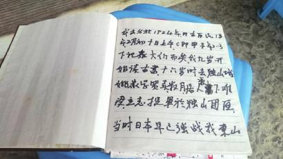 韦永扬有本褐色封面的日记,里面有他一生的记载。第一页这样写着:“我九岁开始读古书,16岁时去独山城区姚家学做买卖,数月居人篱下,难受,立志。遂投军独山团区,当时,日本早已强战(应为占)我东三省……”扉页上,老人记载了他从军后所有的领导名字,从蒋介石到328师少将师长张涛,记得密密麻麻。