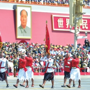 斐济代表队通过天安门广场。京华时报记者王海欣摄