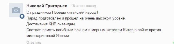 网友“尼古拉·格里高利耶夫”说:“祝中国人民抗战胜利纪念日快乐!阅兵式真的很高端,中国的成就举世瞩目。这次阅兵是对中国在抗日战争中牺牲的军民最好的纪念。”