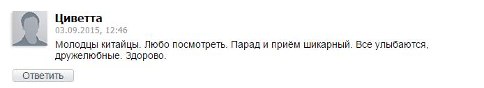 有网友评论说:“阅兵式真的超美!中国士兵的队列行进是一流的,他们在队列里连眼睛都不眨!!!我看过介绍他们训练的短片,那真称得上是魔鬼训练,可是看看人家最终的结果!!!”