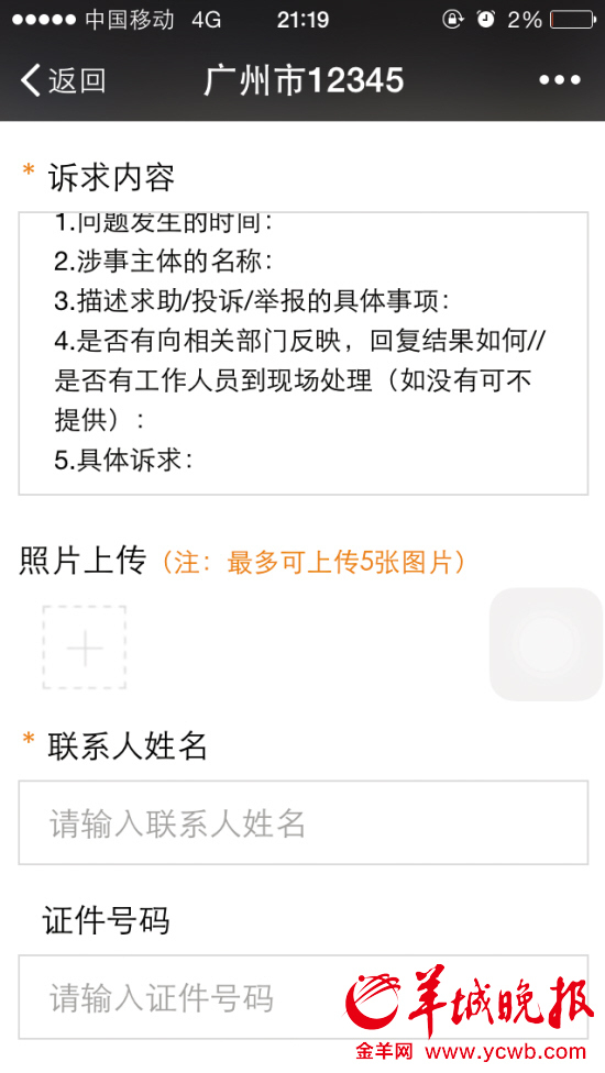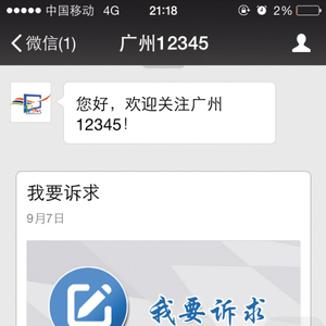 据了解,广州市民可以通过微信公众账号搜索“广州12345”添加关注,在12345微信平台拥有四大功能,一是市民诉求,包括求助/投诉/举报、咨询建议、消费纠纷、户籍迁移、社保业务、噪音扰民;二是在线客服;三是市民服务案例公开、热门话题、信息查询、工作动态;四是@@个人中心,包括“我的诉求”、进度查询、用户绑定等。