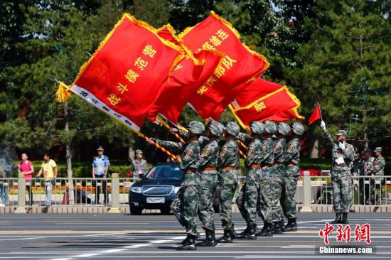 9月3日,纪念中国人民抗日战争暨世界反法西斯战争胜利70周年大会在北京隆重举行。“狼牙山五壮士”英模方队受阅。中新社记者 富田 摄