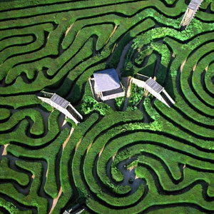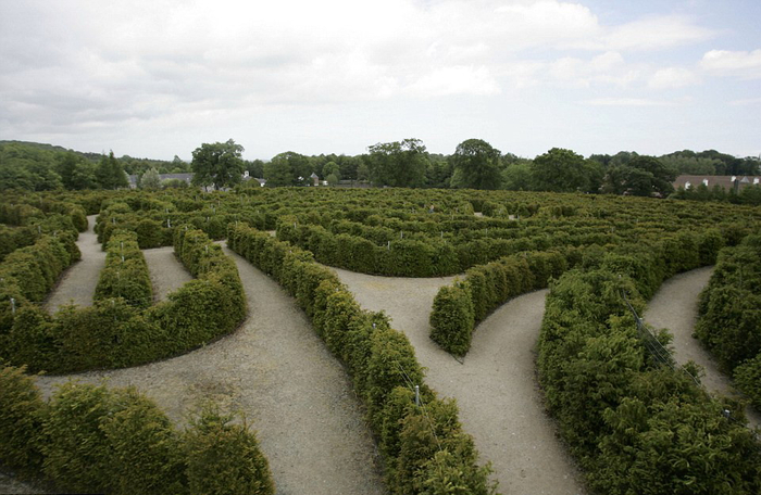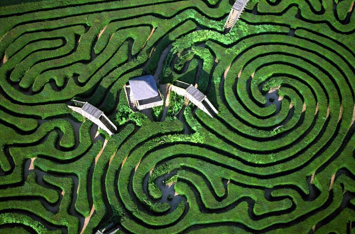 英国威尔特郡朗利特(Longleat)迷宫:这座迷宫由16000道英国紫杉篱笆墙组成,从空中看它,显得超凡脱俗。(网页截图)