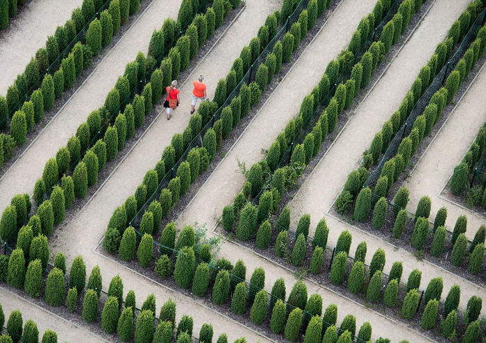 德国岩史瓦顿(Jaenschwalde)Teichland游乐园:俯视这个针叶林迷宫,如果你知道在什么地方转弯,只需几分钟就可以走出去。(网页截图)