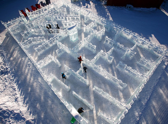 世界冰雪艺术锦标赛中建造的儿童乐园冰雪迷宫:资助2011年锦标赛的人们曾体验这一冰雪建造的迷宫。(网页截图)