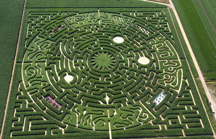 美国佛蒙特州的大佛蒙特玉米迷宫:尝试通过这个农场2014年创建的迷宫的游客,需要努力远离中部的恐龙,平均需要3个小时才能走出去。(网页截图)