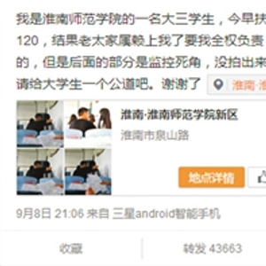 淮南师范微校园:这种事情遇到了要坚决捍卫自己的权利!没有就是没有!大学生的素质在那里~
