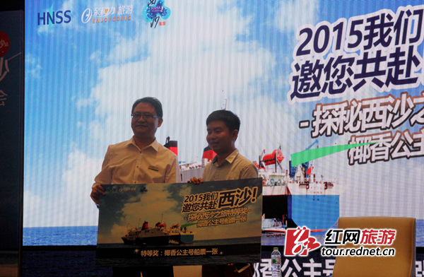 (推介会现场,幸运的网友获得西沙旅游船票。)