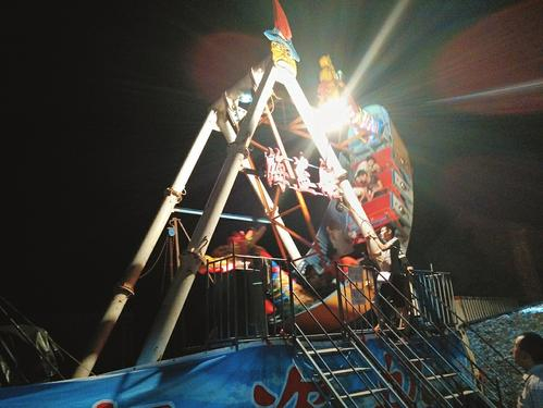 8月16日至18日是壶关县龙泉镇四家池村一年一度的传统庙会,由于该村人口多,又位居城乡接合部,庙会上八方客商云集,摊点星罗密布,但最显眼、最热闹的要数庙会上安装的中小型游乐设施,海盗船、蹦蹦床、卡通小火车…这些在农村少见的游乐设施吸引着孩子们的眼球。8月17日晚上,许多充满好奇的孩子由家长带着在庙会的游乐设施上尽情玩乐,经营游乐设施的老板们生意十分火爆。最惊险刺激的要数坐海盗船,船主人在台上不断吆喝:“一位10元,坐享10分钟,快来过把瘾……”台下等候坐海盗船的人排着长队。走近一看这条船有点破旧,船外表及支架隐现漆皮脱落,船里座位只有个扶手,根本没有安全带等防护设施,而且最高垂直摇摆有90度,看上去极其危险。坐船人中,青少年居多,甚至还有儿童由家长陪着上船玩乐的,船主人往往来者不拒,只顾赚钱,就连游客上船前吩咐的一句安全警示话也没有。“你们这些游乐设施安全没人管吗?”“没有,我下乡赶集已3年多了,就是有些地方免不掉交个占地费吧,其他没见人出面管过。”庙会上一位不愿透露姓名经营蹦蹦床的老板坦言。