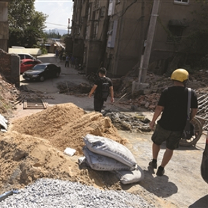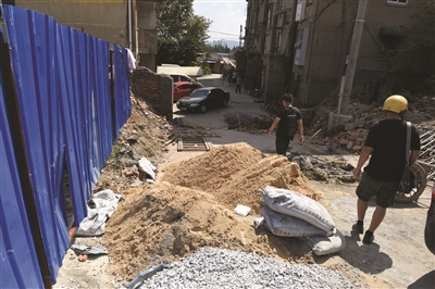 昨天上午10点多钟,扬子晚报记者接到居民赵先生报料赶到孝陵卫街道双拜巷135号,一位小区居民拿出土地证和房产证告诉记者,他们这里原本是南京市技师学院教工宿舍,一共有48户,小区东侧原本就有门,进出通道长约千米、宽5米多,自从上个月,旁边的大发地产进驻开挖施工后,这条通道上就陆续搭建了脚手架,经常有施工车辆设备和施工人员进出。而在小区的西侧,由玄武区教育局新建了一条临时道路,作为孝陵卫初级中学的消防通道,供孝陵卫中学师生和技师学院家属楼住户出入。之前听说开发商也来沟通过,说是为了防止安全隐患,原先的通道不能再用了,要把门堵上,小区要改出口,但居民们一直没有答应,不想他们在9月7日居民上班时间,擅自开来挖土机把小区西侧的围墙扒掉了,说要另外建一个小区门。当时有居民现场和施工人员发生了争执,结果报警,后来孝陵卫街道相关部门和民警到场后暂时叫停了施工。