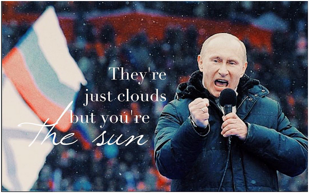 于当地时间9月8日上传的一张爱国主义照片写实记录了普京在政治运动中的姿态,照片附带的图注写着:“他们都是乌云,你才是太阳。”这张照片拍摄于2012年普京总统竞选活动大获成功时的演讲上。《卫报》报道说,近期数据表明,普京的人气达到了历史最高,10个俄罗斯人中有9个表示,他们对于普京保持积极支持的态度。在一项关于支持率的调查中显示出,普京的支持率因乌克兰事件及西方国家对俄罗斯的制裁反而得到提升。(实习编译:王佳楠 审稿:谭利娅)