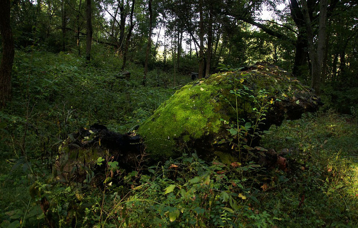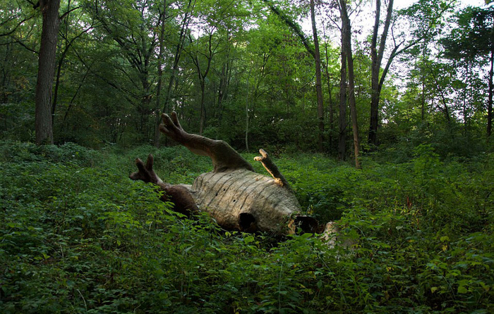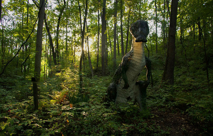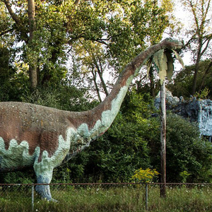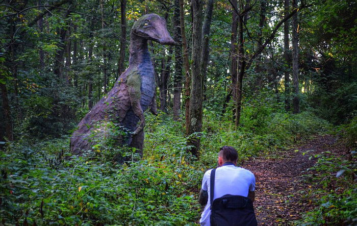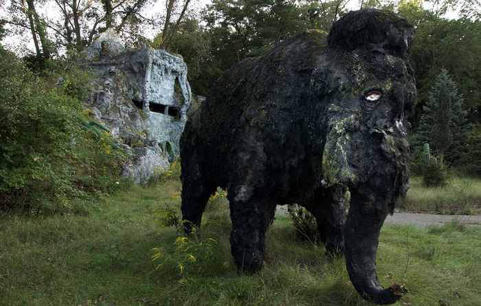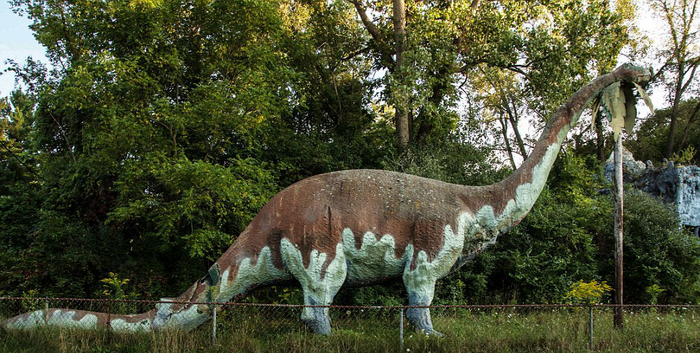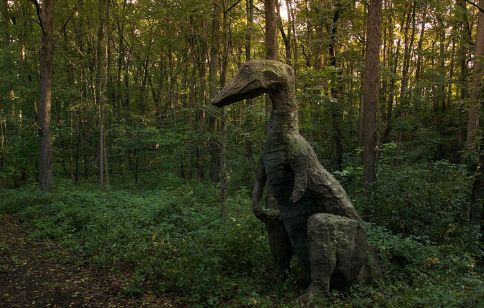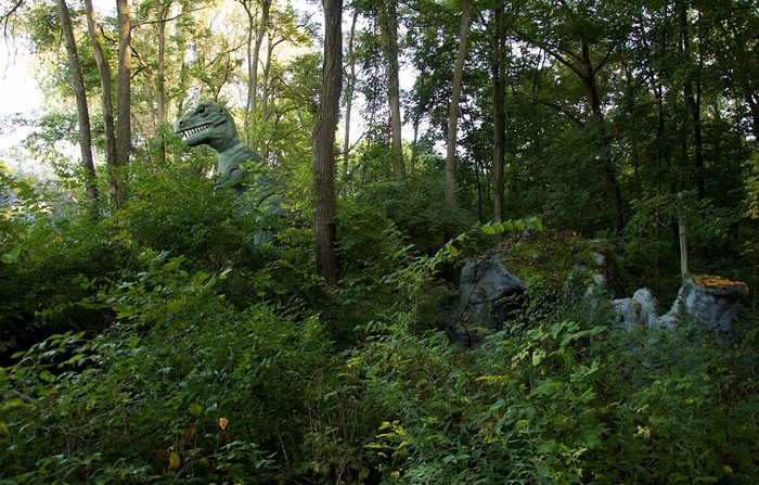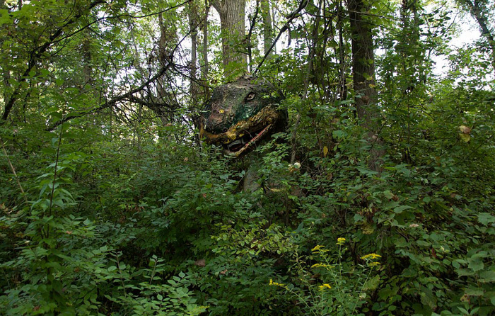 这组照片拍摄于美国密歇根州一个被遗弃的叫做“史前森林乐园”的恐龙主题乐园。该乐园建于1963年,2003年正式关闭,乐园里曾经还有滑水道和瀑布。被遗弃20多年后,现在这些人造恐龙仍然“潜伏”在森林中,它们已经年久失修,许多恐龙已经布满了青苔。