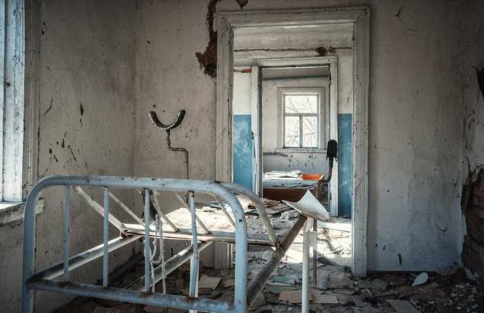 普里皮亚特城医院地下室是今天切尔诺贝利禁区中最容易进入的地方。(网页截图)