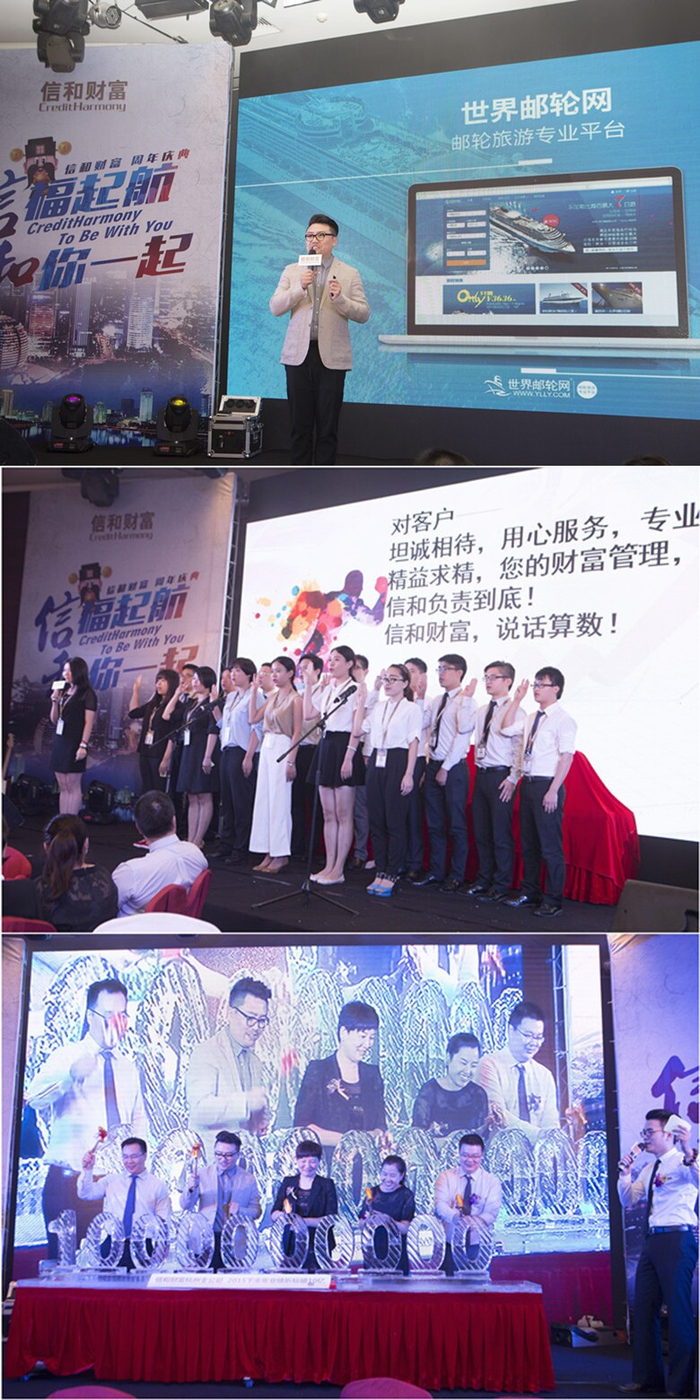 岁月如歌,风霜如画,2015年9月6日信和财富杭州分公司在举国同庆的金秋九月隆重迎来了周岁生日。这一年来信和财富在中国互联网金融的浪潮中蓬勃发展,这巨大的进步离不开信和人的奋力拼搏和风雨的洗礼。在9月6日,终于迎来了信和财富杭州分公司的一周年生日,为了庆祝这特殊的一天,以“信福起航,和你一起”为主题的信和财富周年庆典隆重召开。除了信和财富公司的高层领导与两百多名员工之外,信和财富的四百多名VIP客户也纷纷赶来,共同见证这一美好时刻。