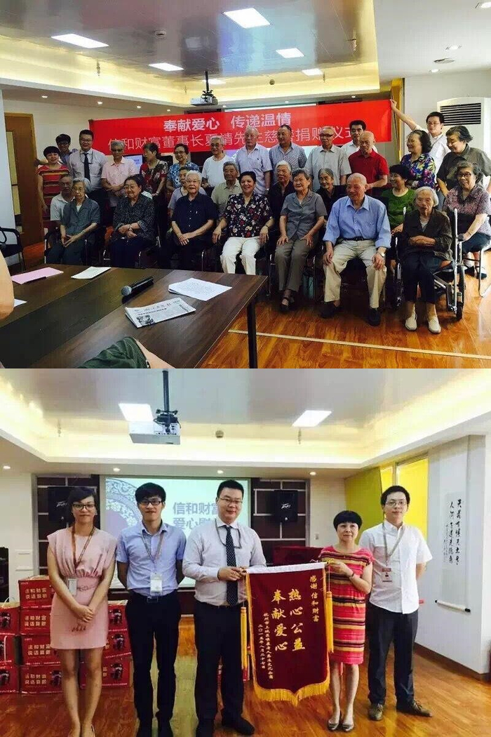 与此,信和财富杭州分公司在不断发展壮大的同时,也没有忘记回馈社会。就在不久前,2015年8月27日,信和财富的董事长夏靖先生向养老院捐赠了1000斤五常大米,以此弘扬敬老的社会风尚,并希望借此行动能唤起社会各界对老人更多的接纳和关爱。