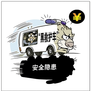 这类“黑救护”存在不少安全隐患。据一位业内知情人士介绍,黑救护车主抬担架上下车并不正规,可能对病人造成二次伤害。有些车辆给病人匹配药量不足,氧气不足,车上的医务人员基本都不专业,如果病人途中发生危险,根本无法进行有效抢救。此外,黑救护车经常不消毒,卫生条件不过关。