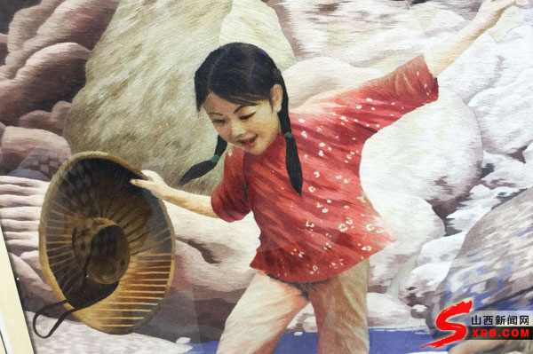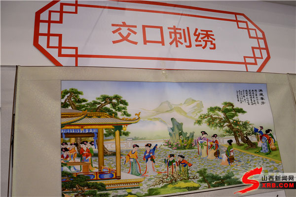 走进吕梁展区抬头一看,“交口刺绣”四个大字下面挂着一副长160厘米、宽60厘米的《满庭春风》,这是“绣娘”们此次参展带来的最大的一幅作品,重现了四大名著之一《红楼梦》中的一个场景。
