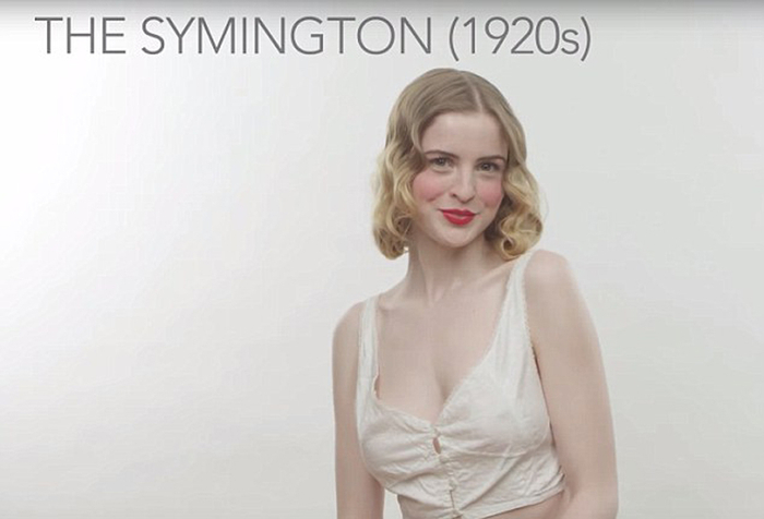 模特身着不同年代风格的胸衣(网页截图)